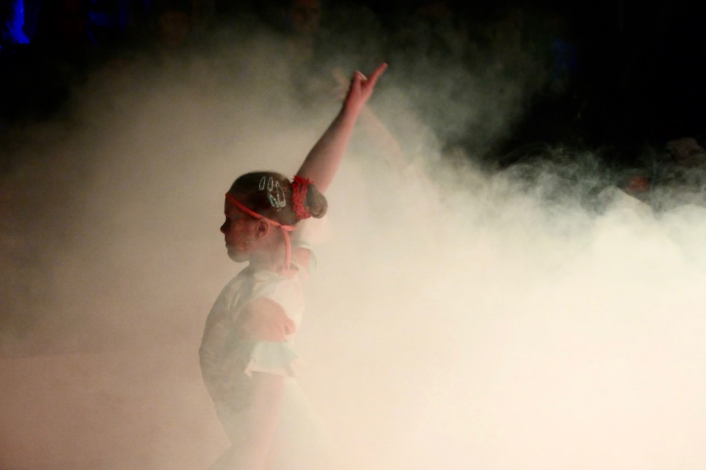 ein Mädchen während einer Zirkusprojektwoche im Zirkuszelt
